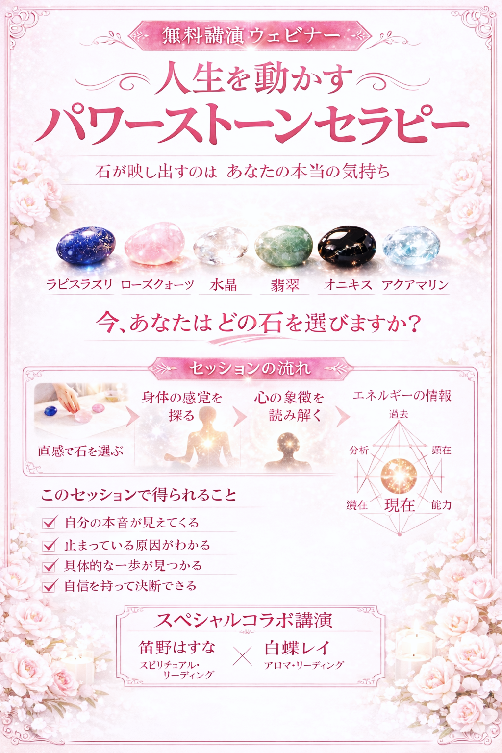 白蝶レイによる「スピリチュアルアロマ講座」では、 精油一つ一つをリーディングし、 無意識に働きかける方法を体系的にお伝えします。